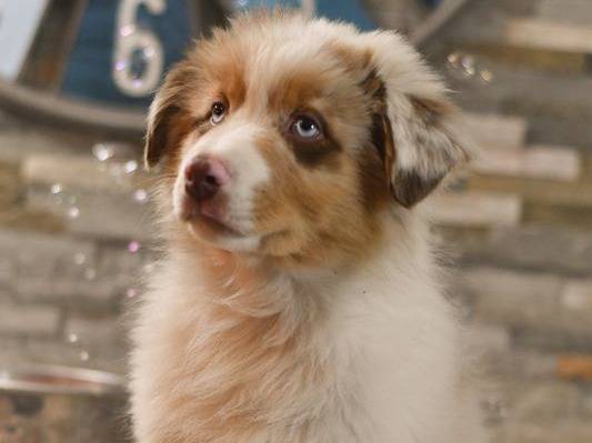 Alabama, un mâle Berger Australien est disponible à la vente. Ce trésor rouge tricolore, joueur et câlin, est disponible pour 1100 euros. Le chiot est issu de parents génétiquement testés : Bohème des quatre...