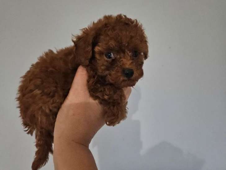 Nous proposons un magnifique mâle Caniche fauve rouge, né le 17 novembre 2025 et promis à une taille toy. Ce petit, issu d'un père toy LOF et confirmé, bénéficie déjà d'une socialisation adaptée.