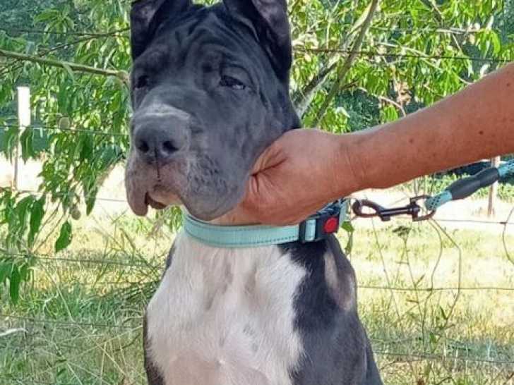 L’élevage des Gardiens de Prailles propose ce chiot Dogue Allemand noir à panachures blanches inscrit dans le Livre des Origines Français (LOF). Il est habitué aux enfants, chiens et pigeons, et issu de parents...