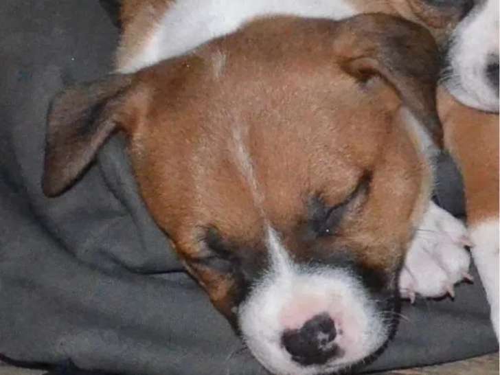 Un chiot mâle Staffordshire Bull Terrier est né le 20 octobre 2025 dans notre élevage, et inscrit au Livre des Origines Français (LOF). Il est issu du mariage entre Gretel et Thor, tous deux testés génétiquement et indemnes de l’acidurie L-2-hydroxyglutarique (L2HGA) et de la cataracte héréditaire (HC).