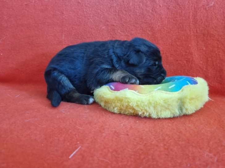 Nous aimons observer la singularité qui s’esquisse dès les premiers jours. Chiot N°6 De l'hacienda del matador, femelle Berger Allemand noire née le 20 février 2026 à Colombier Saugnieu, attire déjà l’attention...