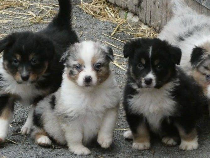Notre élevage familial a accueilli dix chiots Bergers Australiens nés le 22 août 2025. Sept mâles et trois femelles noirs tricolores et bleu merle sont disponibles vers le 18 octobre.