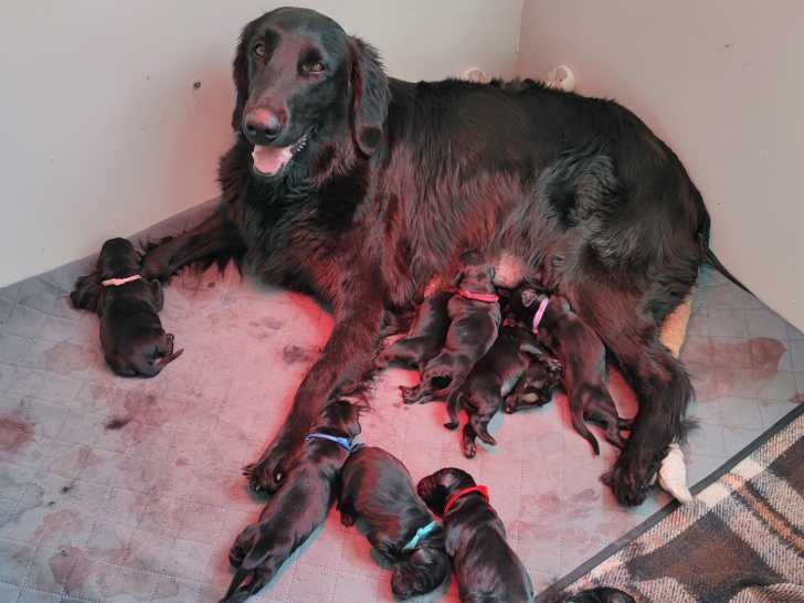 Des chiots Flat Coated Retriever noirs sont nés le 15 juillet 2025. Nous avons la chance d'avoir eu 11 chiots, 7 mâles et 4 femelles. Il reste 5 mâles disponibles et 3 femelles. Vous pouvez voir leurs photos...