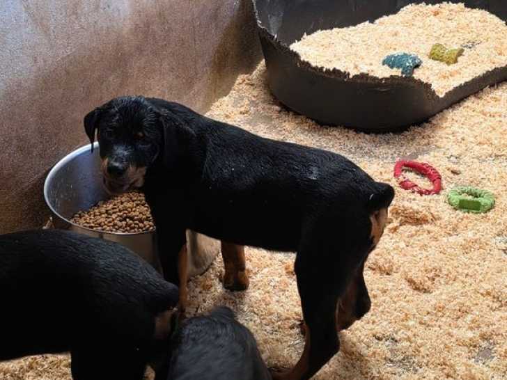 Nous proposons dix bébés Rottweilers nés le 4 juillet 2025, élevés en famille et habitués aux bruits du quotidien. Chaque chiot est pucé, vacciné, vermifugé et suivi par un vétérinaire.