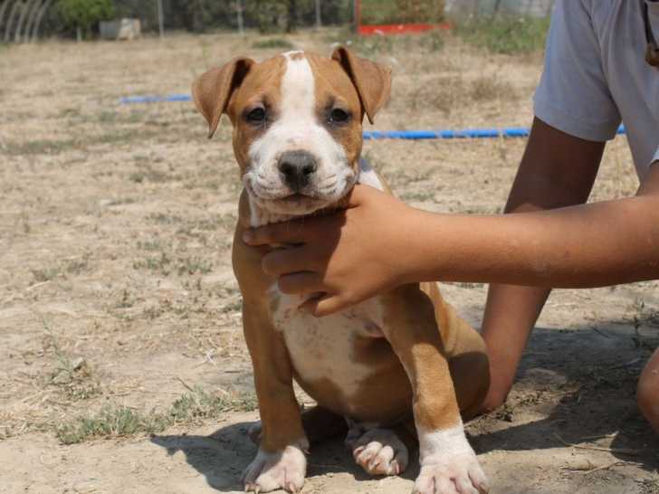 Sur une portée de six Amstaffs, il nous reste deux mâles à proposer. Les chiots sont nés le 16 juin 2022 et sont à réserver. Ceux-ci arborent le même pelage fauve et blanc. Nous les avons déjà inscrits au Livre des Origines Français (LOF).