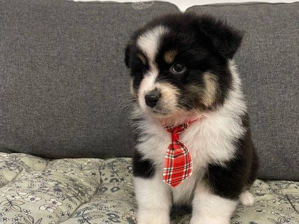 Armani est un mâle Berger Australien queue longue âgé de deux mois et demi, disponible suite à un désistement. Ce petit ours attentif et avenant possède un caractère exceptionnel. Il est proposé à 1500...
