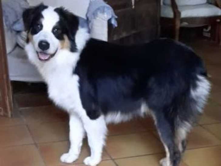 Une portée de deux Bergers Australiens est née le 15 mars 2025. Un mâle et une femelle noir tricolore sont disponibles à la vente pour 500 euros chacun.