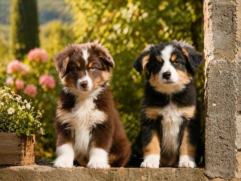 Le Border Aussie est issu du croisement entre le Border Collie et le Berger Australien. Ces deux chiots présentent un caractère doux et affectueux, très proches de l'humain, et ont été socialisés en présence d'autres chiens et chats.