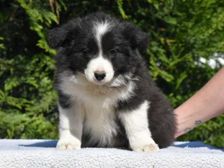 Deux chiots Border Collies, sur une portée de sept née le 1er mars 2022, sont disponibles à la vente. Il s’agit d’un mâle et d’une femelle avec un pelage noir et blanc, tous les deux enregistrés dans le Livre des Origines Français (LOF).