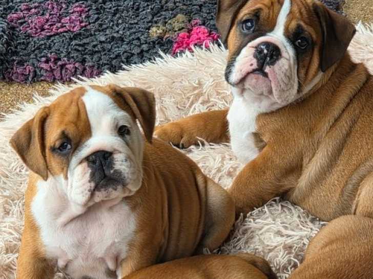 Deux femelles Bulldog Anglais nées le 2 juillet 2025 sont disponibles à la réservation et inscrites dans le Livre des Origines Français (LOF). Elles grandissent en famille avec amour et bienveillance.
