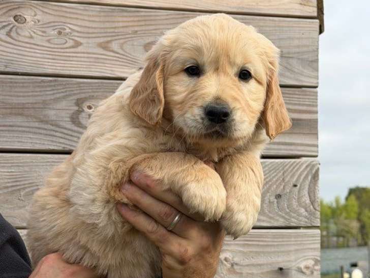 Nos bébés Golden Retriever, nés le 13 février 2026, seront disponibles le 10 avril 2026. Nous avons 1 mâle clair et 2 femelles sables, issus de parents LOF et confirmés, avec un caractère très doux et...