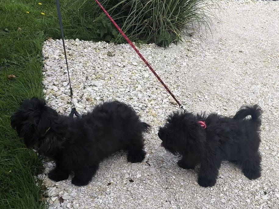 Nous présentons deux joyeux chiots Bichons Havanais, nés le 15 août 2025. Ces quadrupèdes noirs au caractère joueur et tendre se distinguent par leur nature de petits clowns et leur attachement à l’humain.