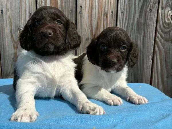 De magnifiques petits chiots Petit Épagneul de Münster nés le 03/04/2026 sont à réserver. Ils seront disponibles début juin. Les parents sont inscrits au LOF, le père est confirmé mais pas la mère (queue...