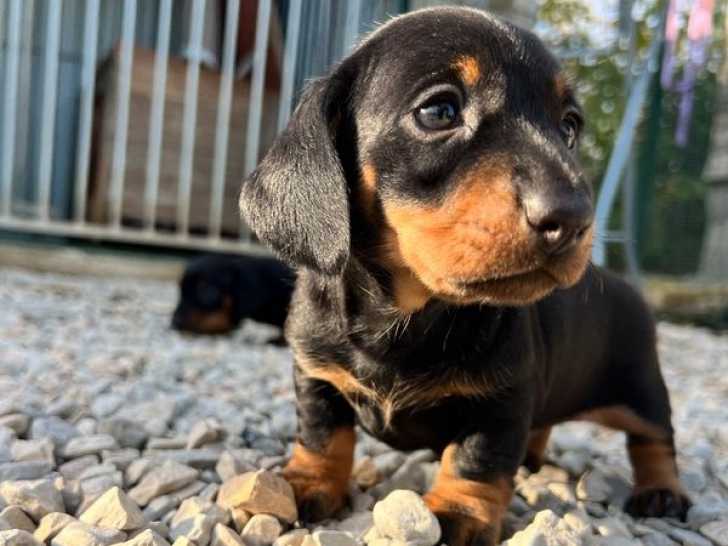 Une portée de deux chiots Teckel nain est née le 15 octobre 2025 dans notre élevage familial. Il nous reste un mâle, Gustave, et une femelle, Thérèse, à la robe noir et feu.