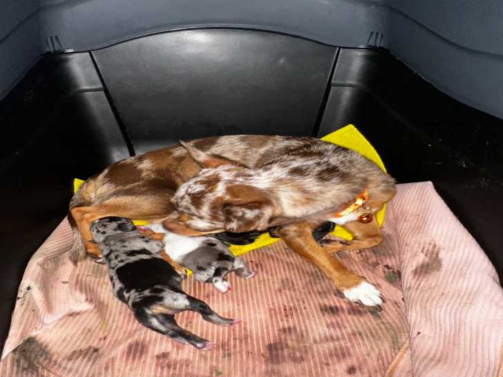 La seconde femelle est arlequin gris noir (ou merle gris noir) et a le poil ras. Elle est câline douce quand mademoiselle, le veut, car le jeu est prioritaire. Elle aime donc beaucoup jouer, elle est speed, elle aime courir d’une pièce à l’autre et elle est très bisous. Elle sera parfaite pour une personne ou une famille qui aime et veut une chienne qui aime bouger, courir et jouer, en gros une chienne qui, lorsqu’elle dort pas, aime bouger et croquer la vie à pleines dents.