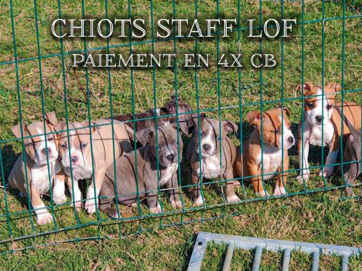 Nous sommes un élevage professionnel depuis 2013 qui propose à la réservation 4 chiots mâles et 1 femelle American Staffordshire Terriers, issus d’une portée de 9. Nés dans un cadre familial sur 3 hectares,...