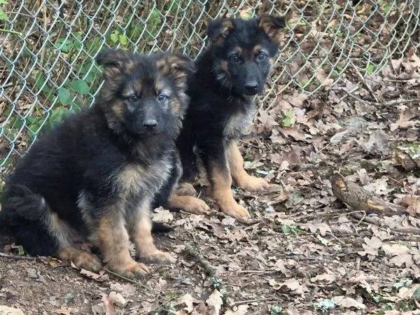 Trois chiots Berger Allemand, deux mâles poil long et une femelle poil court, cherchent leur famille. Ces compagnons robustes, équilibrés et non inscrits dans le Livre des Origines Français (non LOF), sont disponibles pour 600 euros chacun.