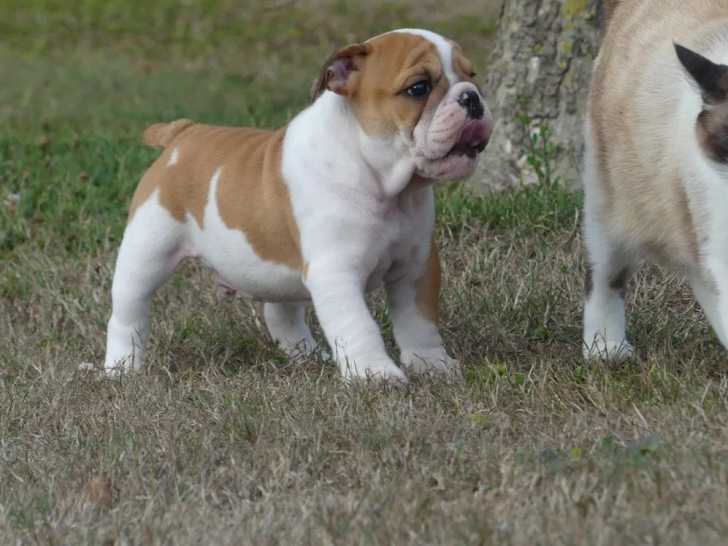 À l’Élevage Land Van Mechelaar, nous proposons deux chiots femelles et un mâle Bulldog Anglais inscrits au Livre des Origines Français (LOF), nés le 26 mai 2025, pour 1?800 euros chacun. Nos chiots grandissent à la maison, en contact permanent avec nous et les autres animaux.