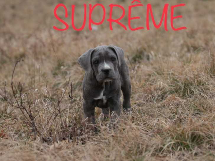 Nous mettons à votre disposition trois chiots Canes Corsos, nés en décembre 2021 dans une même portée. Nous avons un mâle couleur froment, ainsi qu’un mâle et une femelle au pelage gris bringé. Tous les trois sont inscrits dans le Livre des Origines Français (LOF).