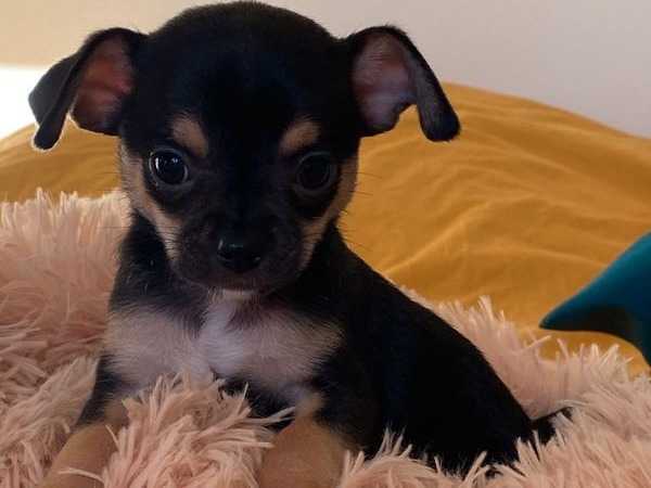 Nous proposons, à la vente, dans notre élevage du Royaume de Vaïana, trois chiots Chihuahua mâles de petit gabarit issus d’une portée née le 12 novembre 2021. Les deux premiers sont tricolores noir feu et blancs, et le troisième porte une robe tan noire et feu.