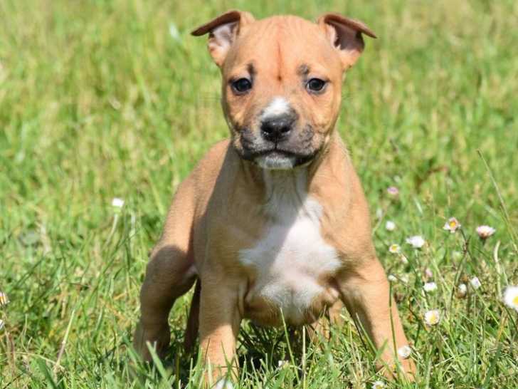Nous proposons à l’adoption 3 chiots American Staffordshire Terriers (Amstaff), 2 femelles et 1 mâle, issus d’une portée de 8. Nés le 20 octobre 2024, ces derniers sont inscrits au Livre des Origine...