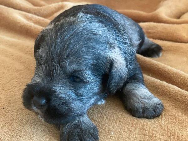 Trois petits mâles Schnauzers Nains poivre et sel sont nés en septembre 2025 dans notre élevage. Ils sont aujourd'hui disponibles à la réservation pour un départ mi-novembre.