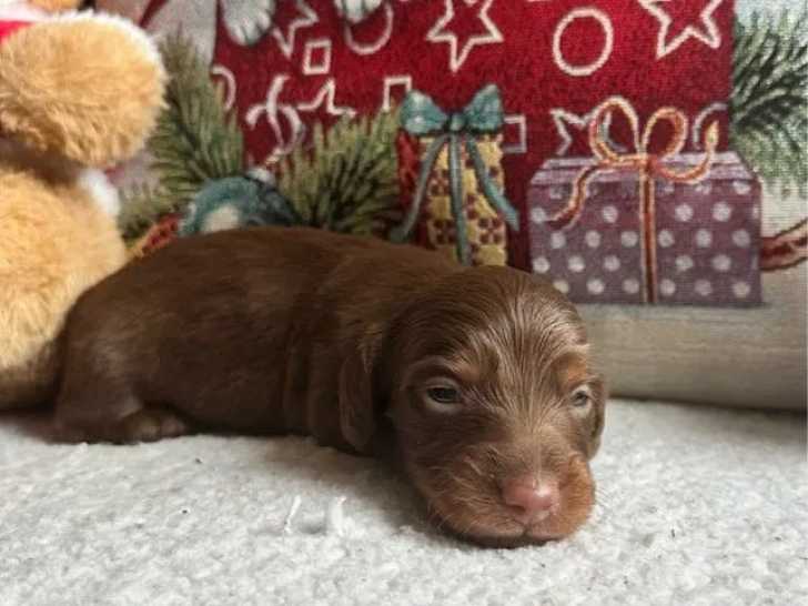 La réservation est ouverte pour trois bébés Teckel non inscrits au Livre des Origines Français (non LOF), issus de différentes portées composant un mâle né le 23 novembre 2025, une femelle née le 11 décembre 2025 et un autre mâle au pelage noir et feu. Nos chiots sont entourés d’enfants et habitués à d’autres races.