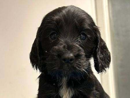 Nous vous proposons un magnifique chiot mâle Cocker Spaniel Anglais noir. Ce petit est disponible à la réservation pour 1300 euros et présente d'excellentes dispositions pour l'exposition. Issu de parents...