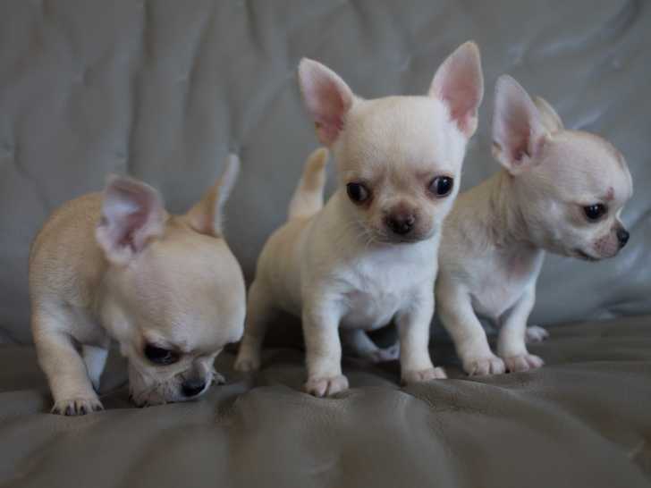 3 chiots mâles Chihuahua de pure race, inscrits au LOF, sont à réserver. Ils ont le poil court. Ils sont nés le 27 mars 2023.