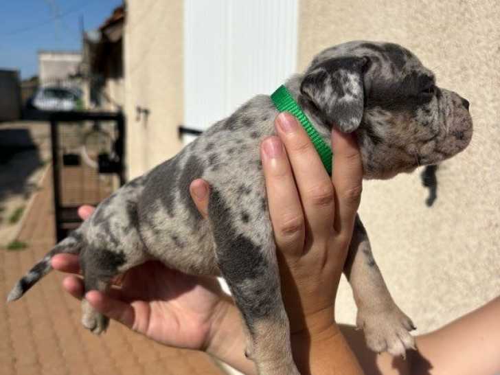 Nous proposons à la réservation sept chiots American Bully XL issus de prestigieuses lignées. Cette portée compte quatre mâles et trois femelles, arborant des robes merle choco, lilac et choco. Élevés en...