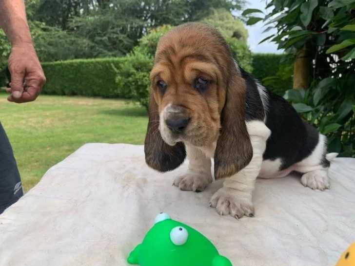 Nous sommes ravis de vous présenter 7 chiots Basset Hound inscrits au Livre des Origines Français (LOF), nés le 21 juin 2025. Parmi eux, 2 mâles et 2 femelles sont encore disponibles à la réservation pour 1300 euros chacun (avec possibilité de paiement échelonné).