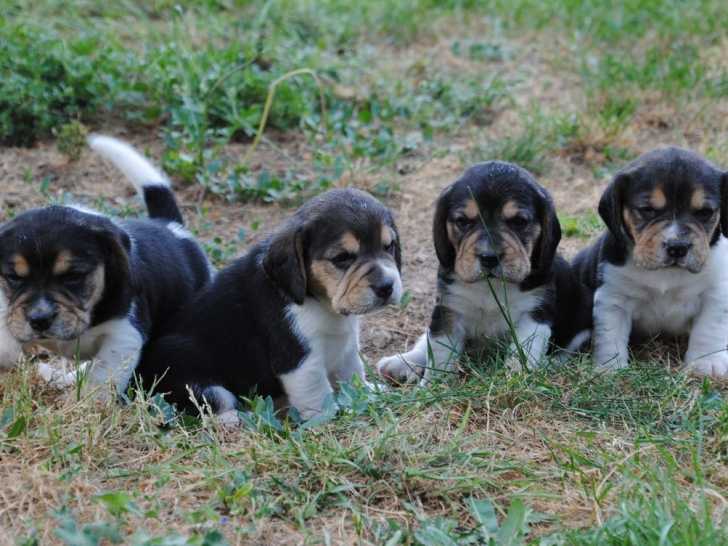 Une portée de quatre chiots Beagles est disponible à la vente dans notre élevage. Il s’agit de trois mâles et d’une femelle au pelage tricolore et inscrits dans le Livre des Origines Français (LOF).