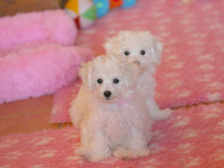 4 chiots Bichons Frisés, âgés de 3 mois, sont à la recherche de nouvelles familles.