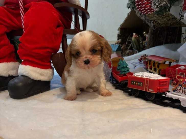 Sur une portée de quatre chiots Cavalier King Charles nés le 21 octobre 2025, il reste trois femelles et un mâle à réserver. Ces petits blenheim au gabarit réduit sont disponibles pour respectivement 2000 et 1900 euros.