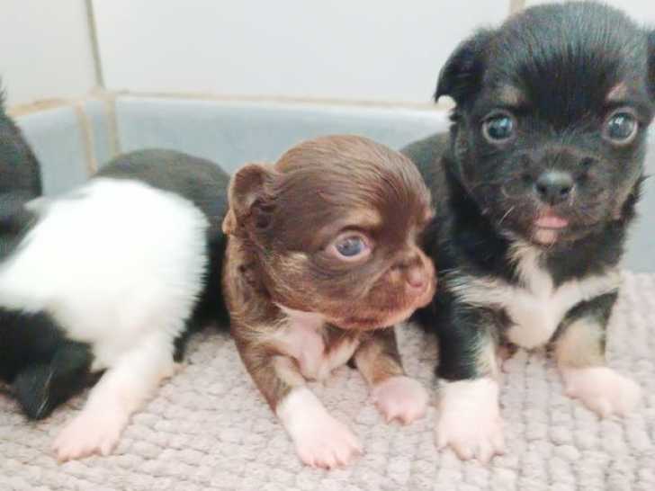 Trois chiots Chihuahuas sont disponibles à la vente. Nés le 28 octobre 2025, ces trésors noir et tan ou fauve, de gabarit standard ou petit, sont disponibles à partir de 1200 euros. Les chiots sont issus de...