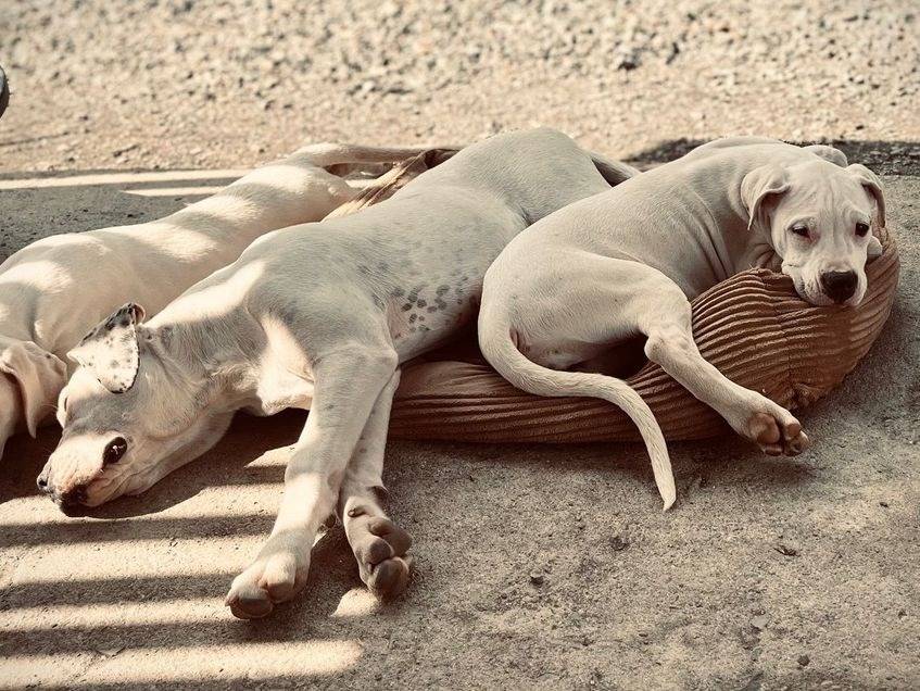Nos quatre chiots Dogues Argentins sont nés le 9 juin 2025, et issus d'une lignée d'exception. Ces petites femelles, toutes entendantes, sont prêts à partir tout e suite.