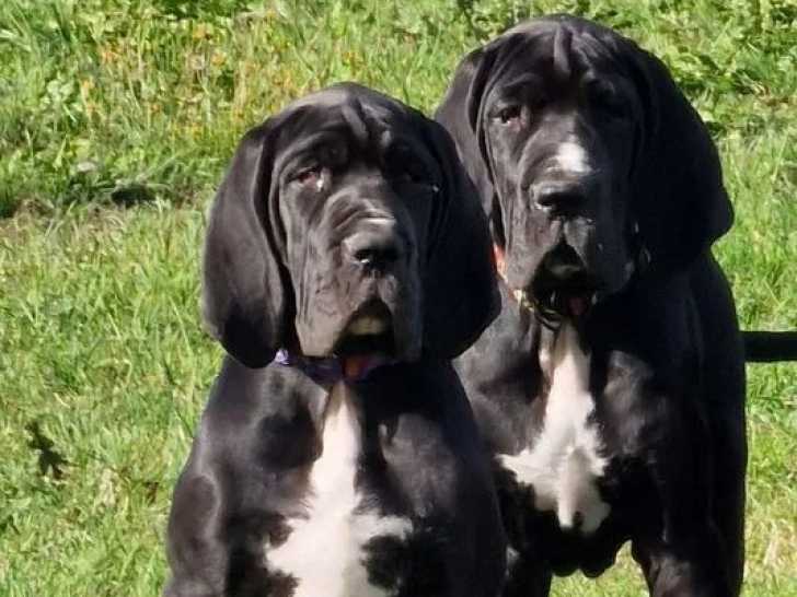 Nous proposons quatre magnifiques chiots femelles Dogue Allemand venues au monde le 2 juin 2025. Inscrites au Livre des Origines Français (LOF), elles sont issues d’un mariage prestigieux : père champion de France, mère radiographiée de dysplasie de la hanche et du coude. Elles sont identifiées, vaccinées, pucées et accompagnées de leur passeport.