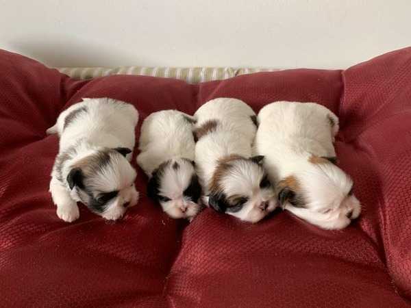 L’élevage du Grand Sénéchal propose à la réservation 4 chiots femelles Shih Tzus tricolores nés au sein d’une portée de 5 le 13 avril 2022.