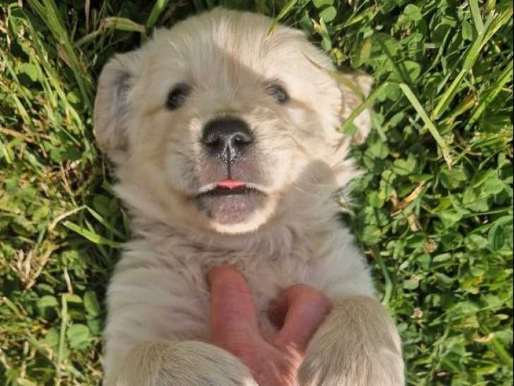 À l’élevage des Terres Bleues De L’Anjou, petit élevage familial de Golden Retrievers, nous sommes ravis de vous annoncer la naissance de 7 chiots le 12 avril 2025 parmi lesquels 1 femelle et 3 mâles attendent encore d’être réservés.