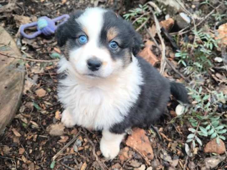 Sur une portée de neuf chiots Berger Australien nés le 19 octobre 2025, il reste un mâle à vendre. Ce petit noir tricolore à queue longue est disponible immédiatement pour 900 euros. Le bébé est vacciné...