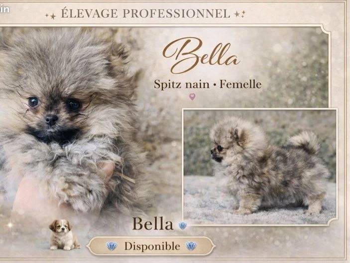 Nous proposons à la vente un chiot femelle Spitz née le 20 novembre 2025, présentant une robe bleue de couleur particulièrement rare. Elle affiche une silhouette très typée Poméranien, avec une fourrure...