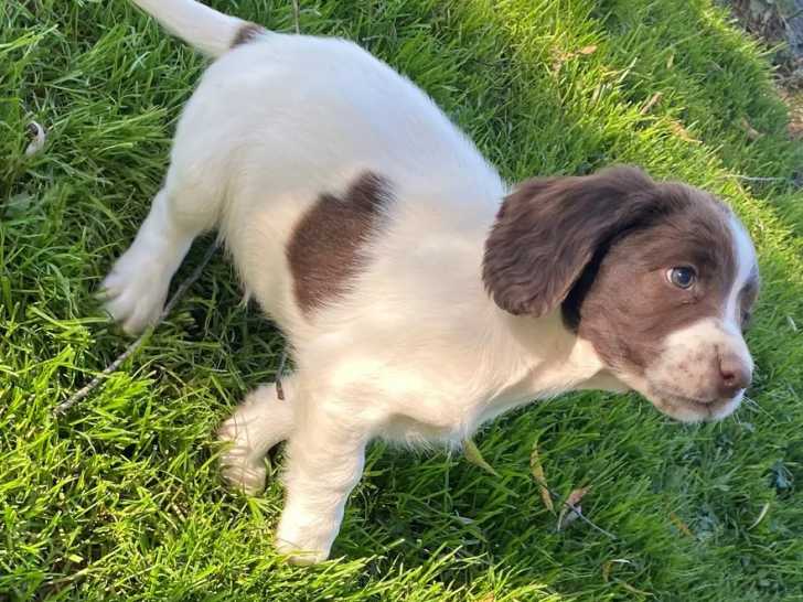 À réserver un chiot mâle Springer non LOF, issu de parents LOF, né le 26 janvier 2026 pour 490 euros. Les parents chassent tous les deux petit gibier et gibier d'eau, garantissant de belles aptitudes...