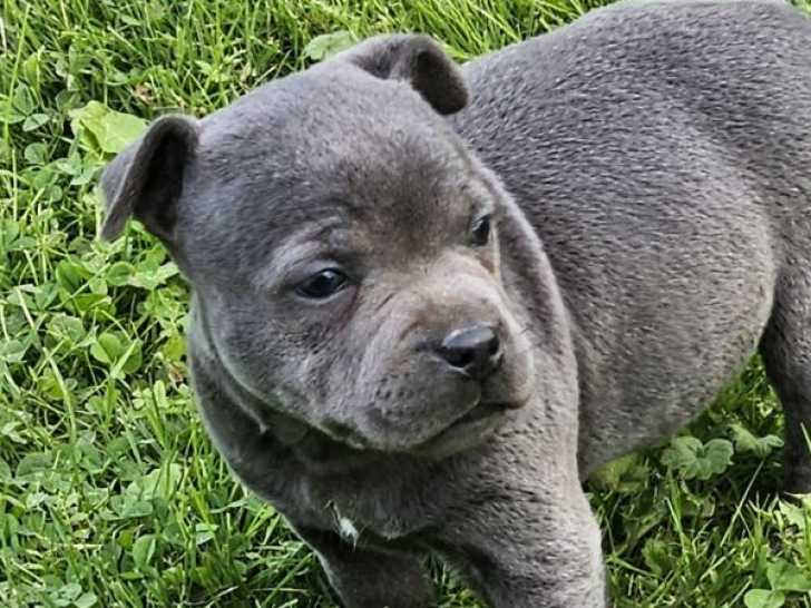 Suite à un désistement je remet en vente mon chiot Staffordshire Bull Terrier bleu, LOF, née le 19/04/2025, en parfaite santé (il a un certificat vétérinaire du 19/09/25). Un nouveau sera effectué si besoin...