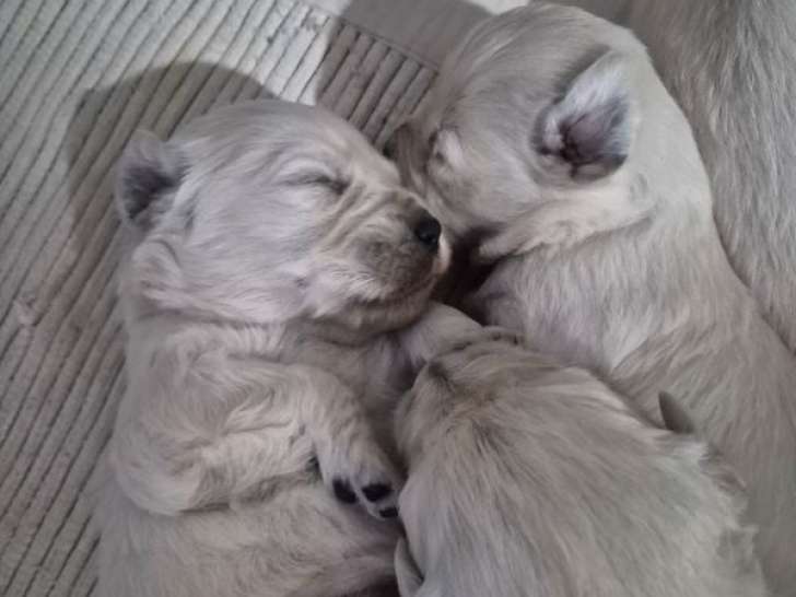 Une portée de chiots Golden Retrievers est née début janvier 2026 dans notre élevage. Il nous reste quatre mâles de couleur blanche, disponibles à partir de début mars.