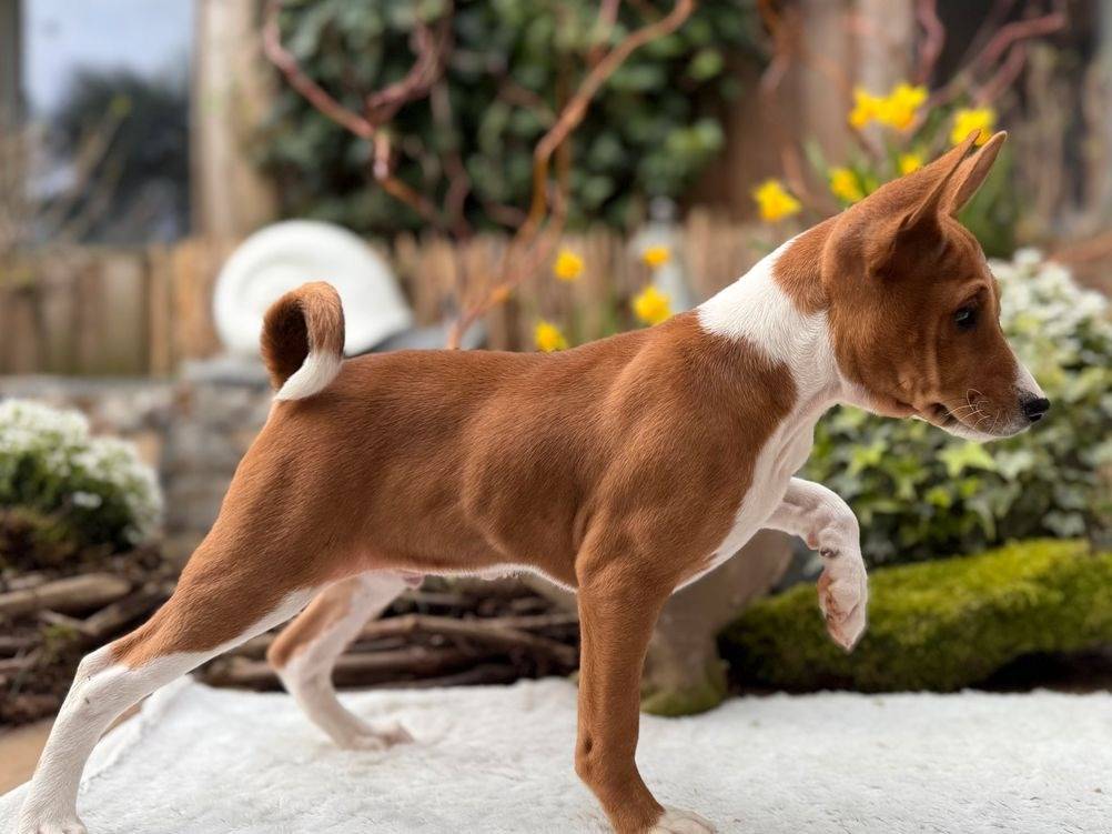 Ce jeune chiot mâle est un Basenji, né le 6 janvier 2026 à notre élevage d’Almenêches. Depuis sa naissance, il explore le monde avec une concentration presque féline. Après plus d’un mois et demi de croissance...