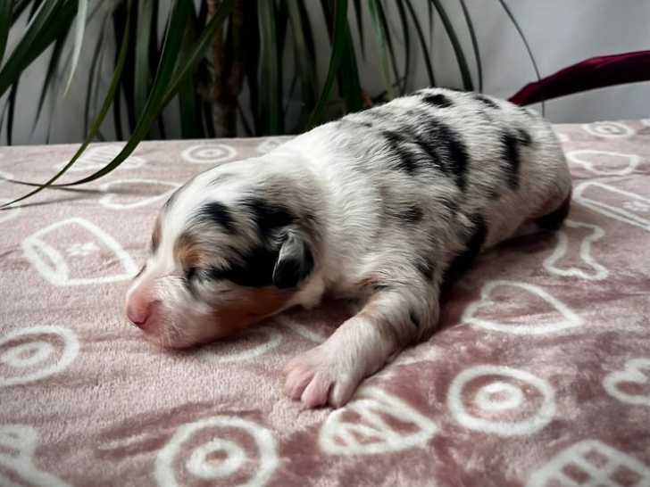 Sur une portée de 5 chiots Berger Australien nés le 28 janvier 2026, 4 chiots sont disponibles à la réservation. Une femelle bleu merle, une femelle rouge merle et deux mâles noir tricolore attendent leur...