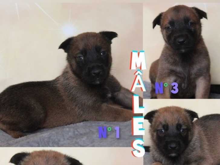 Nous proposons à la réservation cinq chiots fauves dont une femelle et quatre mâles Berger Belge Malinois inscrits dans le Livre des Origines Français (LOF), disponibles à partir du 4 mars, ces petits sont proposés à 800 euros chacun.