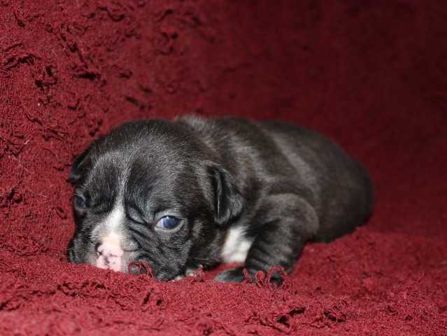 Deux mâles de notre portée de Bouledogue Français noir bringé non-LOF sont disponibles. La mère, Pearl, et le père, Bambou, sont tous les deux Bouledogue Français et sont visibles au Domaine de la Ternoise.