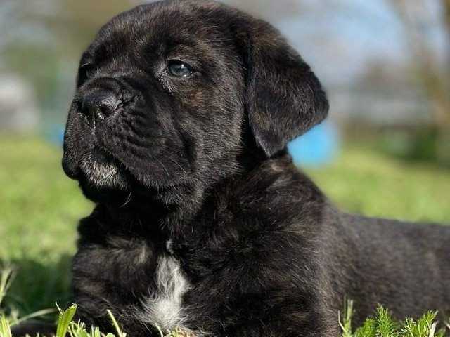 Trouver une famille pour la vie pour chacun de nos cinq chiots Canes Corso noir bringé, nés le 2 mars 2022, fait partie des priorités de notre élevage Alassea Seregone.