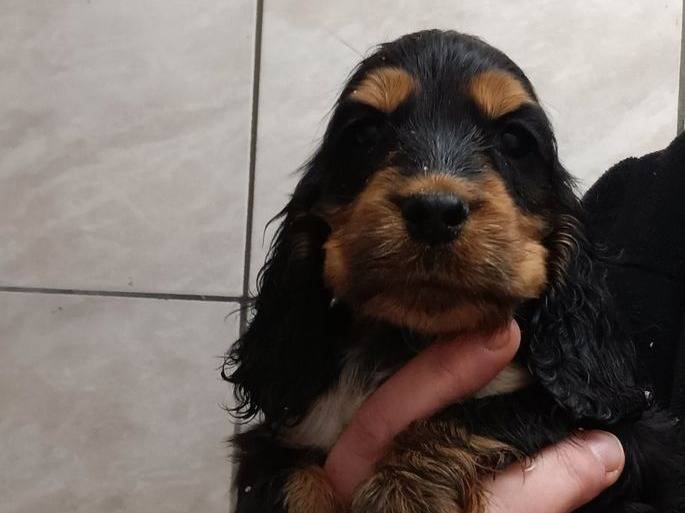 Nous disposons de chiots Cocker Spaniel Anglais inscrits au Livre des Origines Français (LOF), nés le 14 juin 2025. La portée se compose de 2 mâles (bleu tricolore et blanc orangé) et 4 femelles (1 noir et...